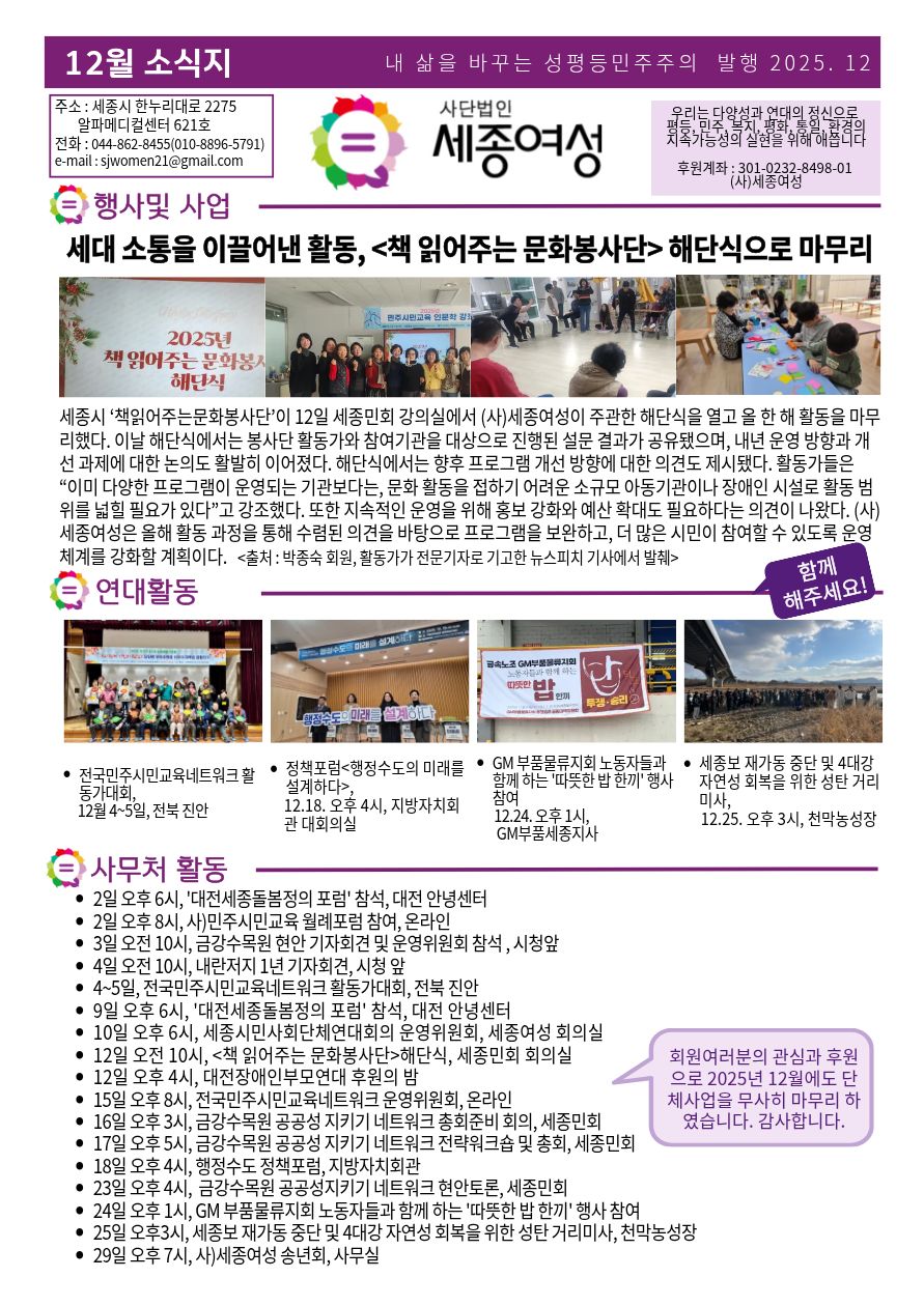 2025년 12월 사단법인 세종여성 활동소식입니다.